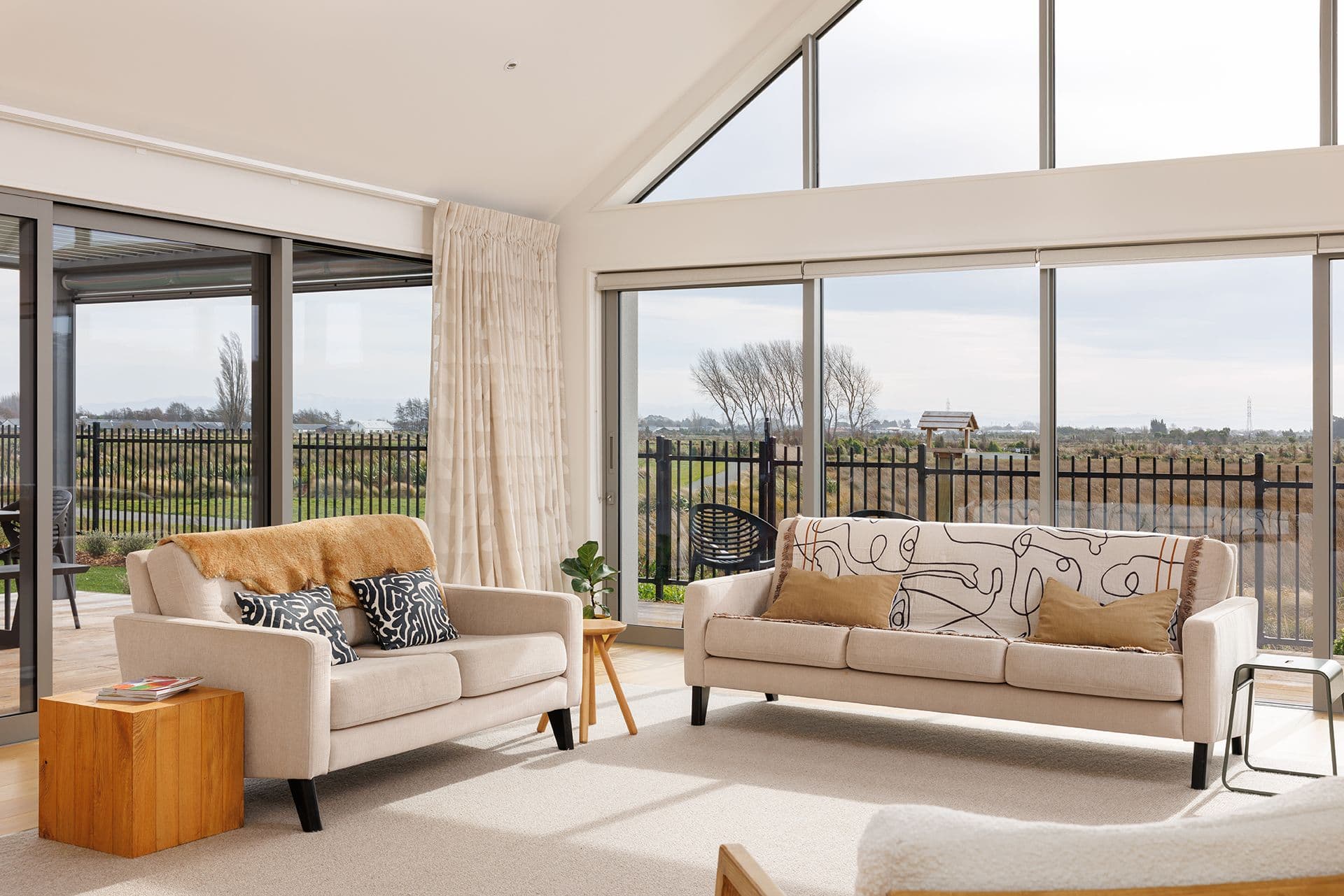 - Light-filled raked-ceiling living area