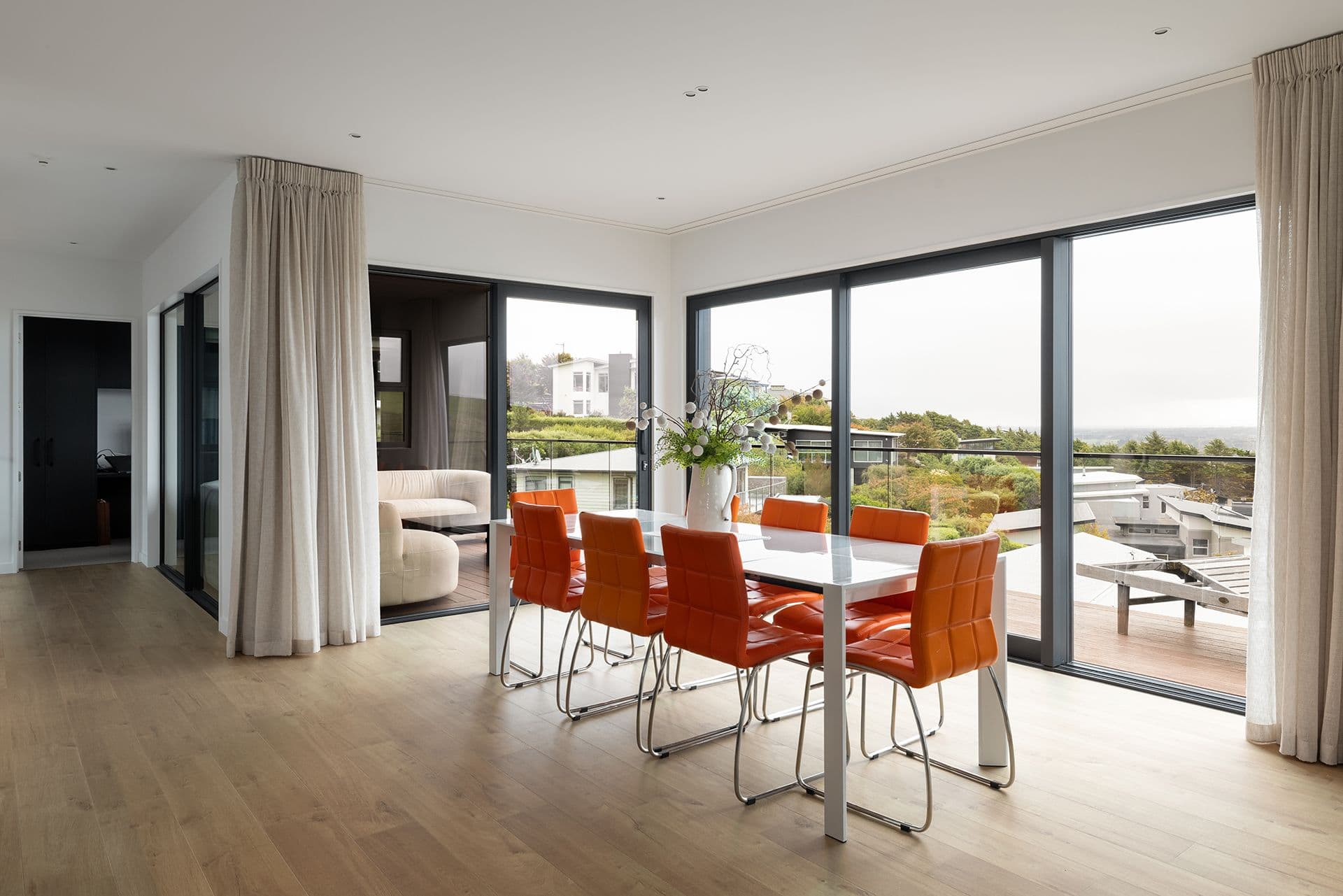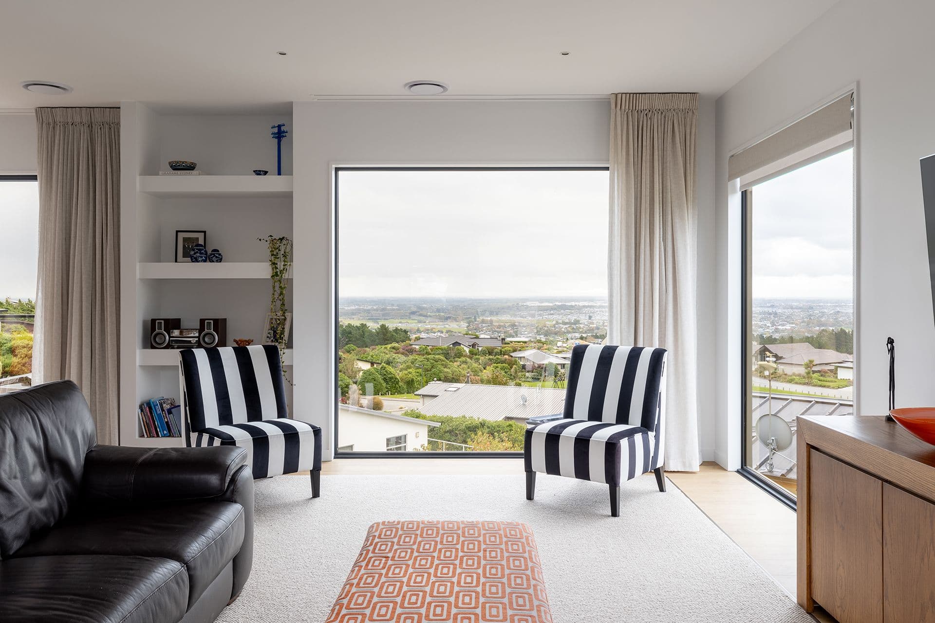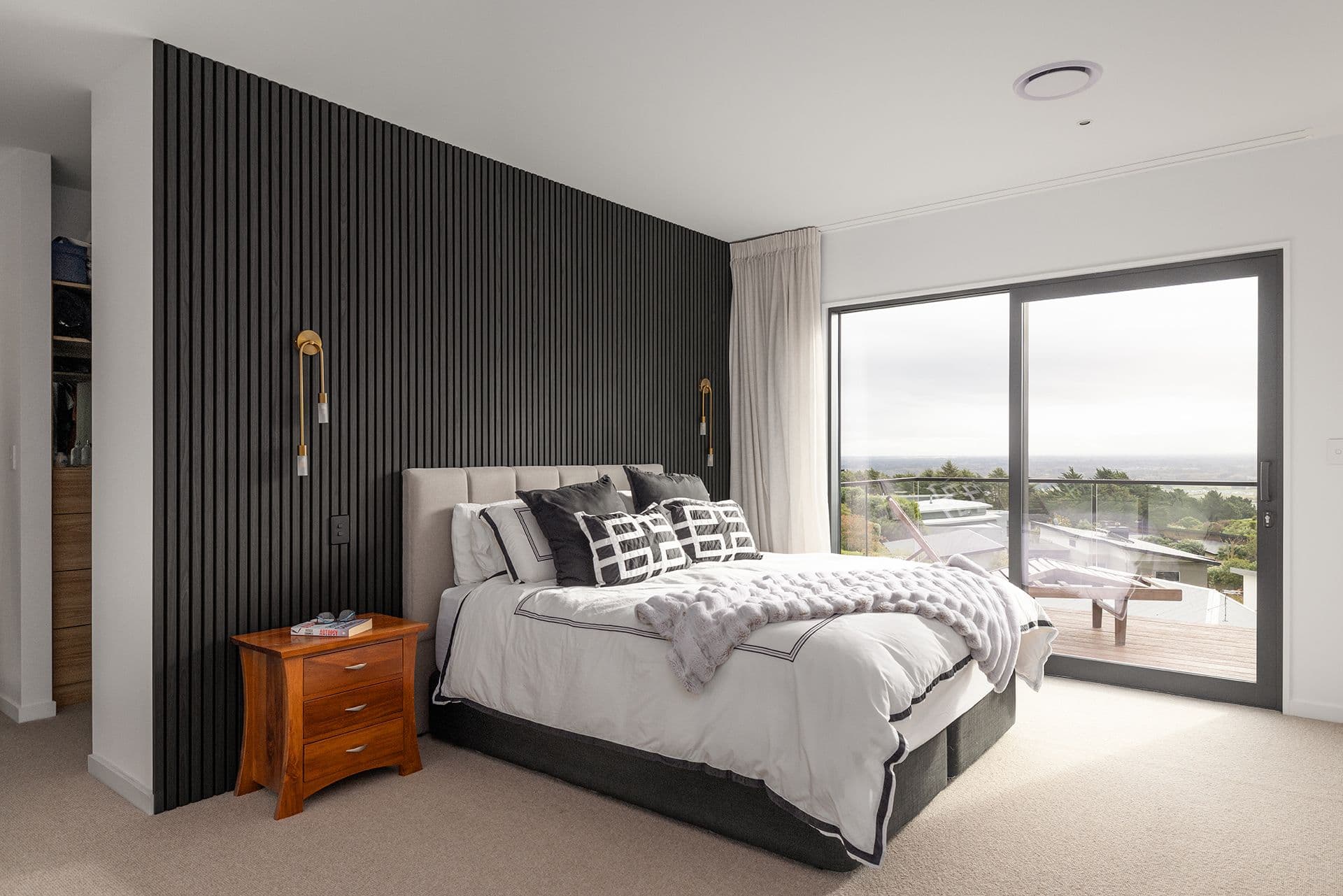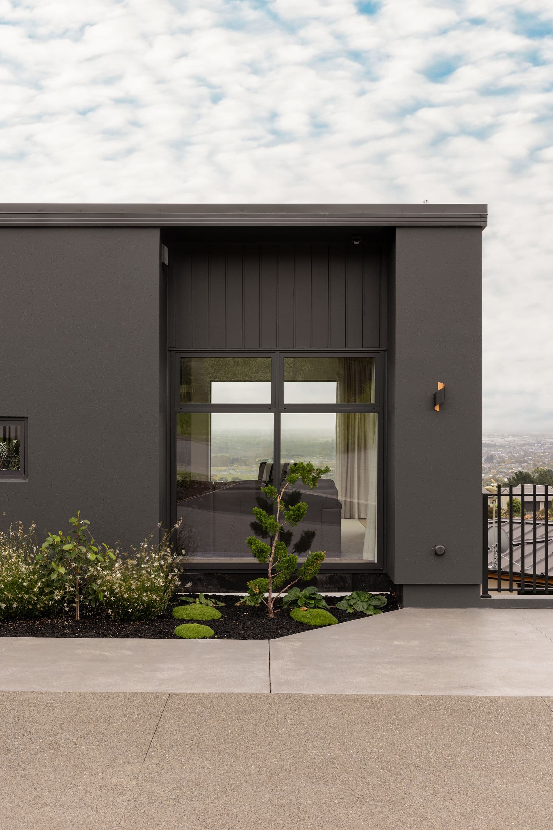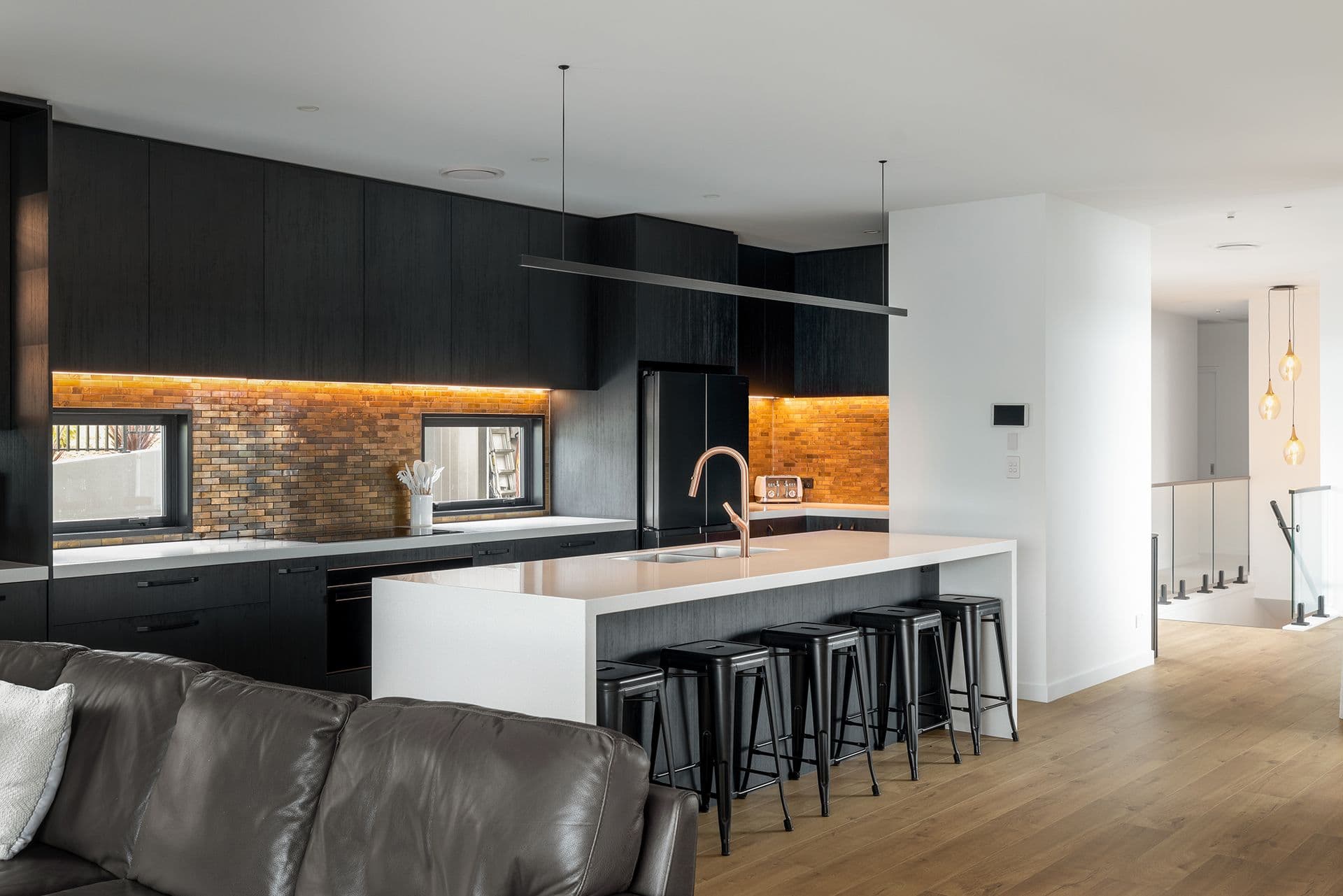 This architecturally striking home, designed and built to Benchmark Homes’ renowned standard, presents a bold statement in modern hillside living. With clean lines, a dark exterior palette, and a low-profile form that responds effortlessly to the contours of the land, this home offers a rare combination of design innovation, elevated comfort, and panoramic views. The homeowners approached us with a unique brief: to create a home that embraced the slope of the site, delivered uninterrupted views from key living spaces, and balanced bold contemporary styling with warm, inviting interiors. Our Design Team collaborated closely with them to deliver a home that maximises its position, celebrates its outlook, and provides a seamless connection between indoor living and expansive outdoor entertaining.