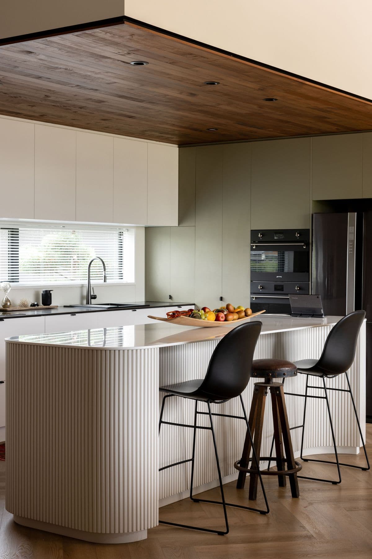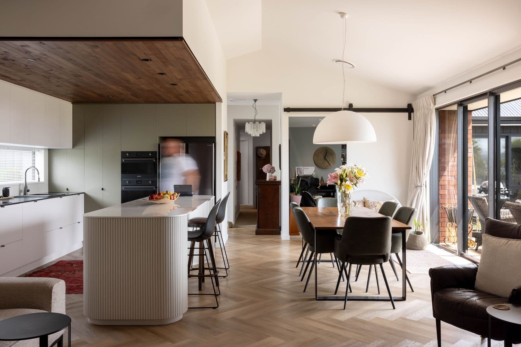 Discover minimalist elegance in the heart of a serene neighborhood. This charming home features a striking red brick gable and meticulous interior details. With herringbone hardwood flooring and a thoughtful kitchen design, including a timber ceiling and a bulkhead for separation, every element exudes sophistication. The feature ceiling, with black negative detail, complements the timber furniture throughout the house. Experience timeless beauty and tranquility in every corner.