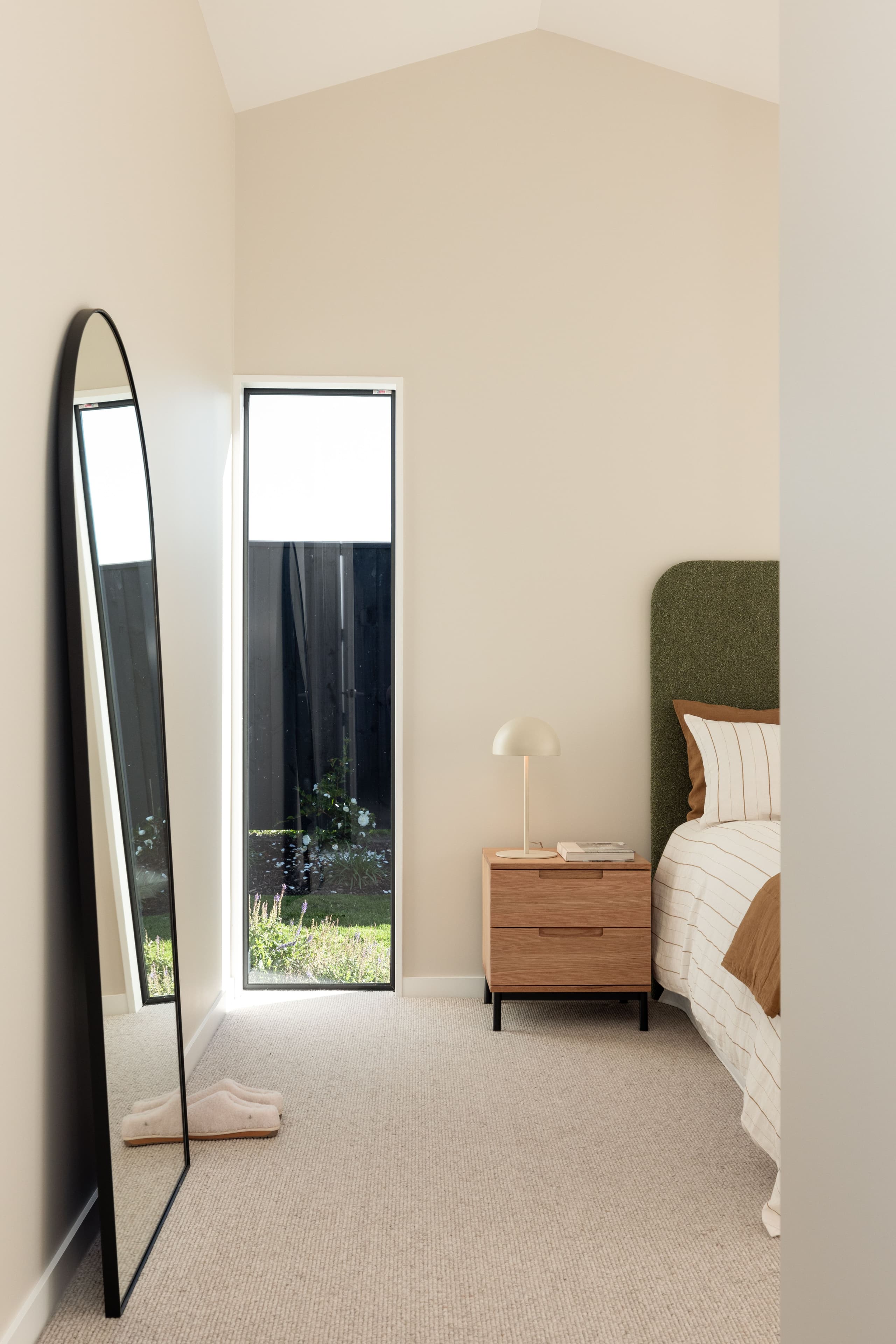 Designed with the flexibility demanded by modern family living, the Oakbridge is a 220m² pavilion home that captures all-day sun and creates shelter with multiple courtyards. A contemporary façade pairs cedar slats with flush Oblique cladding and an integrated garage door. Step through a look-through feature entry into a spacious foyer, where a picture window frames a native fern garden. Open-plan living and dining soar under pitched ceilings, with an impressive Velux skylight feature flooding the interior with light. The gourmet kitchen and butler’s pantry glow with strip lighting and stainless-steel benchtops, finished with wool carpet and laminate flooring throughout.