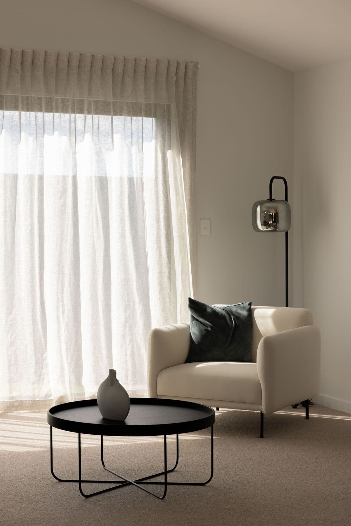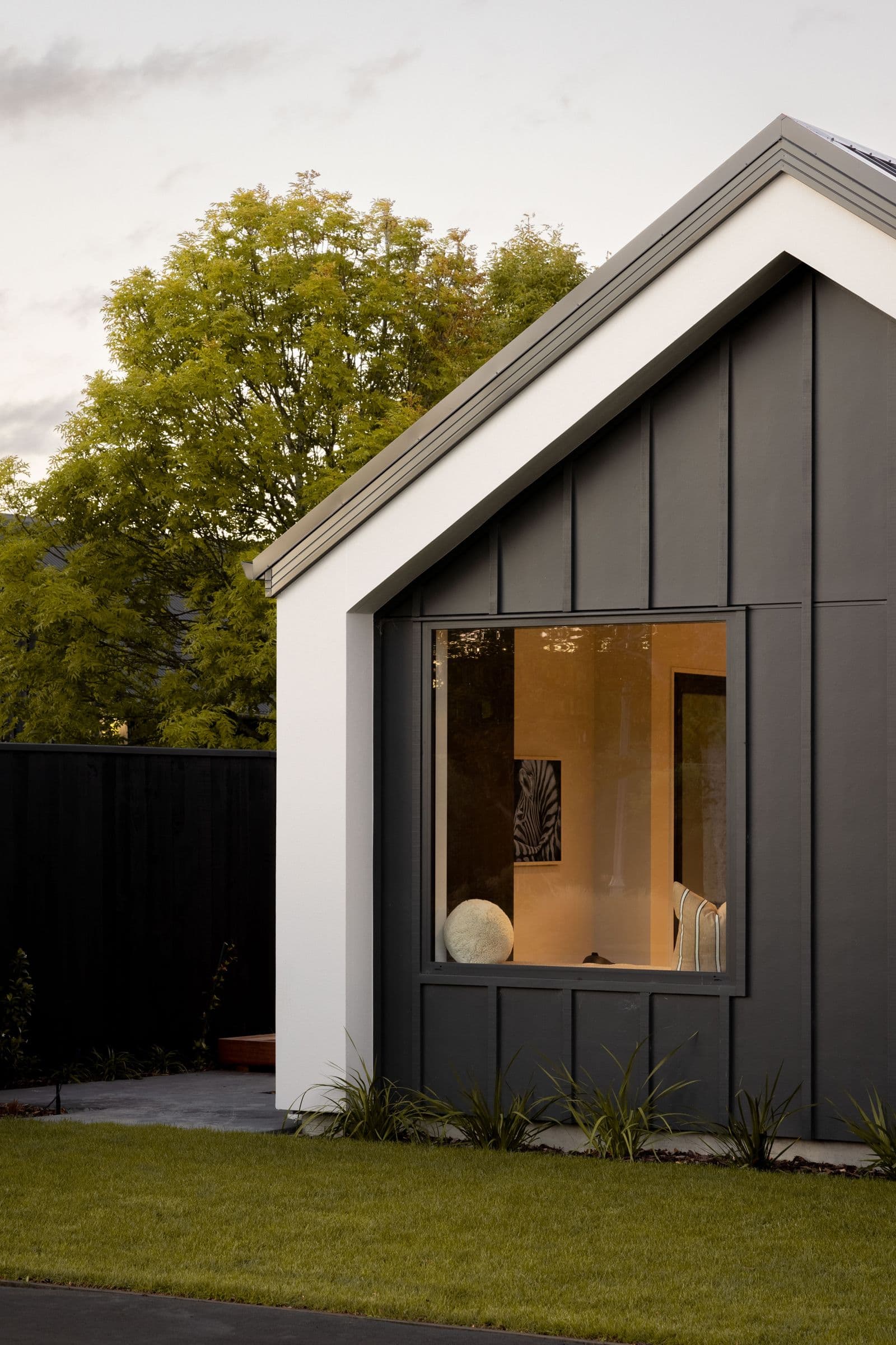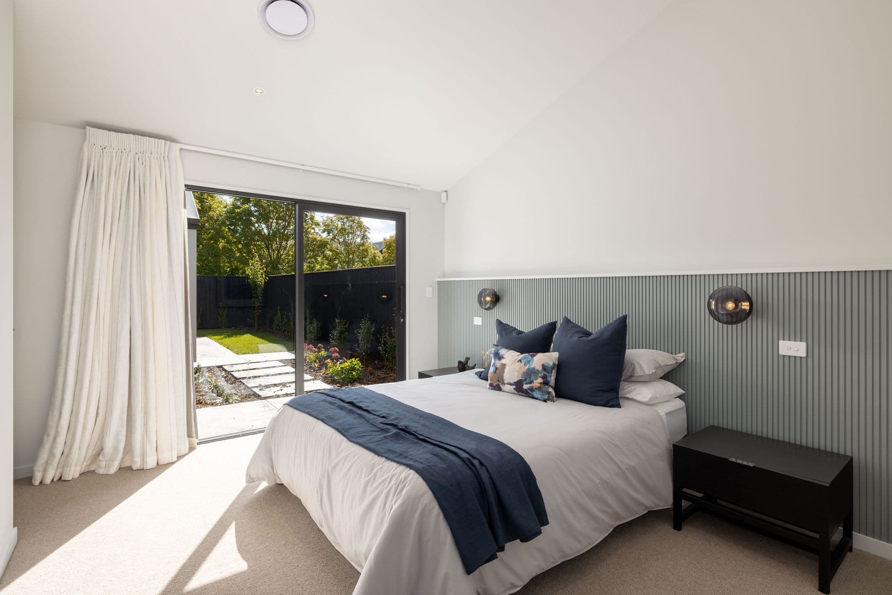 A striking stone schist wall welcomes you into an expansive living space seamlessly blending indoor and outdoor living. The kitchen features a trendsetting bi-fold pantry, while the master bedroom boasts compact elegance with a scissor truss ceiling and luxurious ensuite. With premium materials and sophisticated design, this home epitomizes Central Otago living, showcasing Benchmark's craftsmanship in Wānaka and Queenstown.