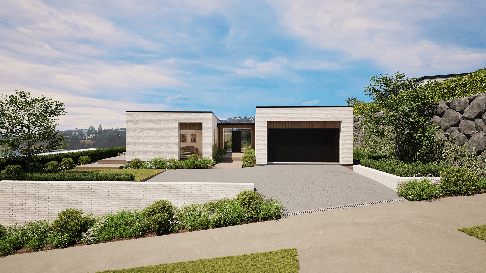 An upcoming project in sought-after Cashmere Estate (Ridgeline), this architectural home is designed to embrace modern hillside living with premium finishes throughout. Plaster and board-and-batten cladding are paired with a striking Wanaka Schist accent, creating a timeless and refined street presence.